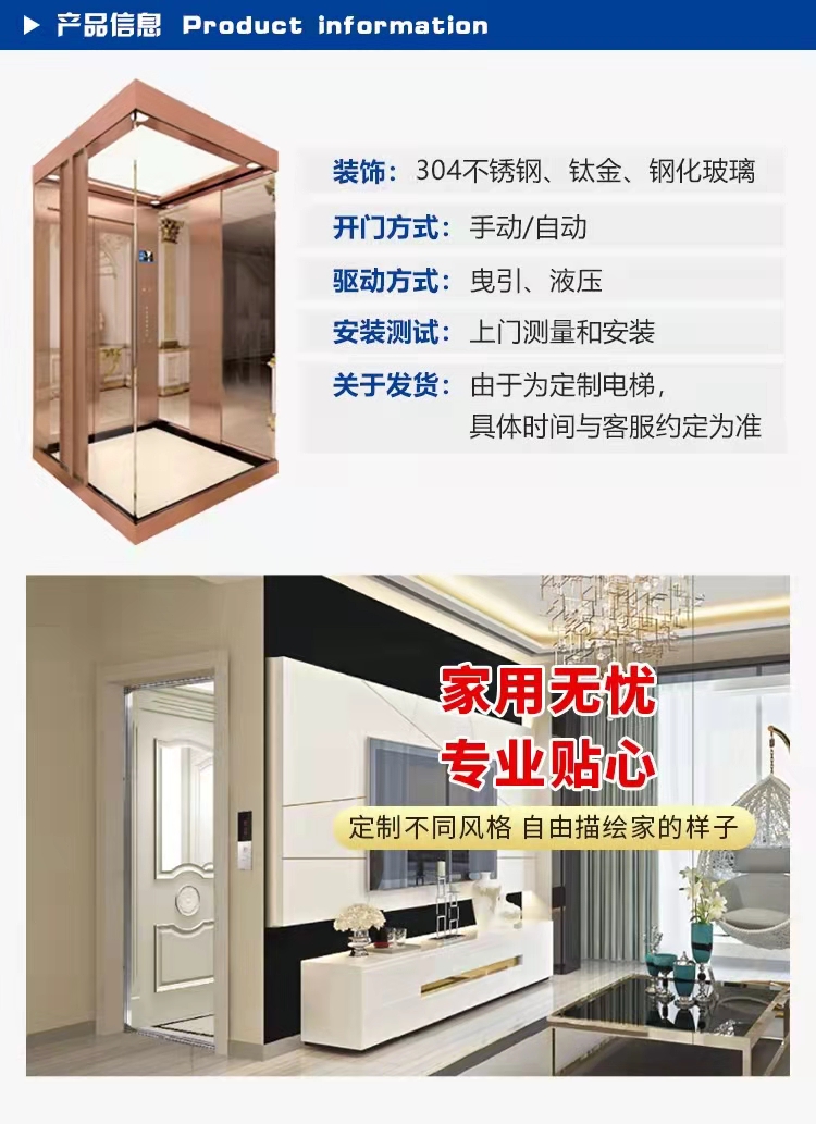 別墅電梯 觀光別墅閣樓復(fù)式躍層升降機(jī) 節(jié)能安全 帶燈光 時尚簡約