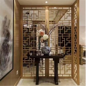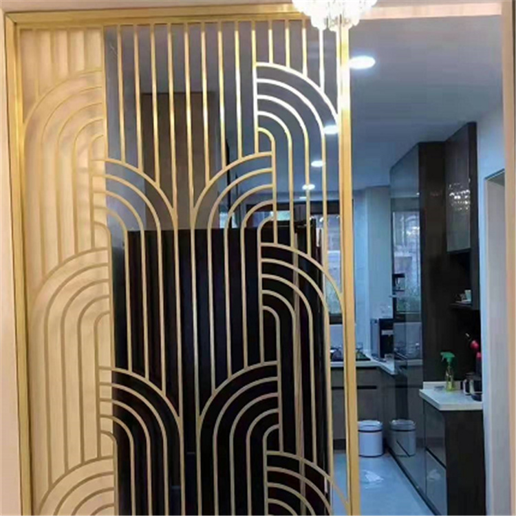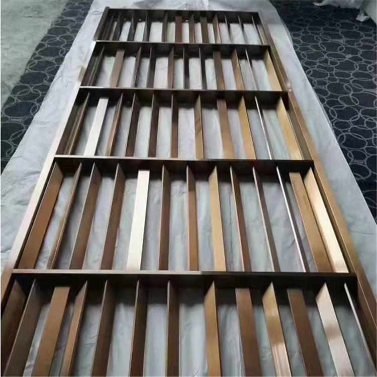詳細(xì)信息 不銹鋼屏風(fēng),是采用不銹鋼材質(zhì)的管材或者板材,經(jīng)過切割、焊接、打磨、拋光等一系列工序處理,鍍上顏色,制作成的金屬屏風(fēng)。
