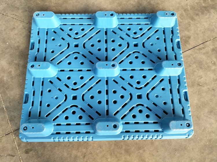 塑料托盤采用進(jìn)口的具有高沖擊強(qiáng)度的高密度聚乙烯(HDPE)塑料原料,一次注塑成型,托盤質(zhì)輕固堅(jiān)、無釘刺、無