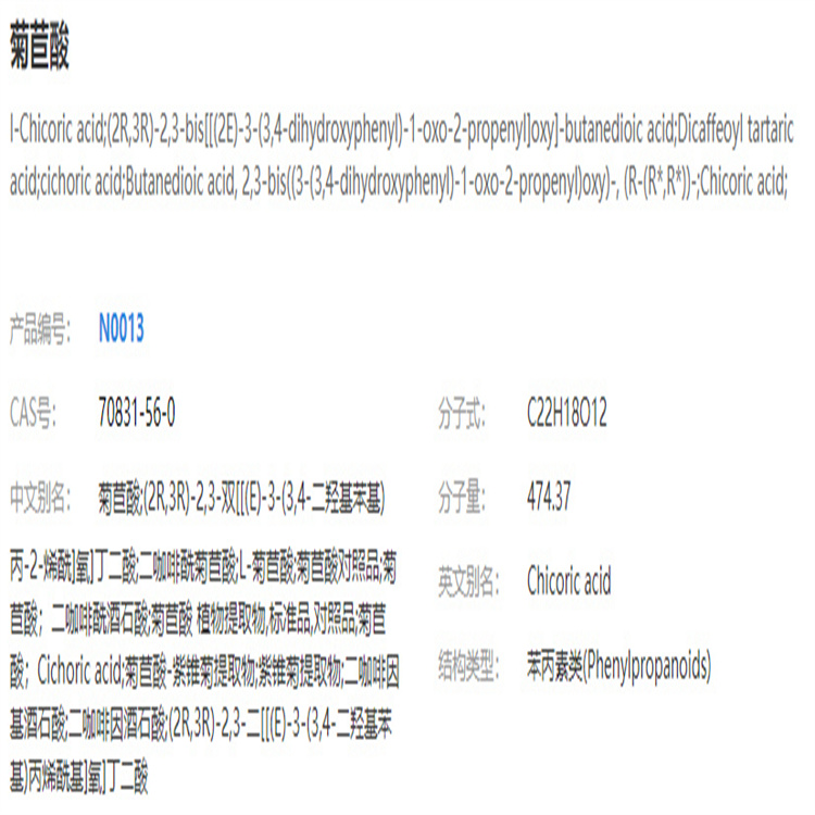 菊苣酸 70831-56-0 中藥對照品 標準品 HPLC≥98%