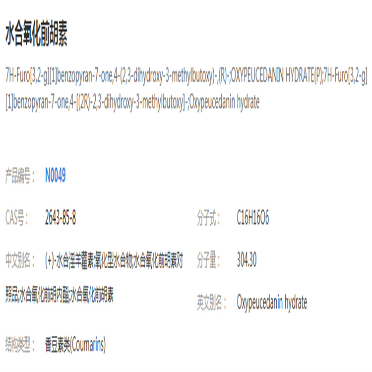 水合氧化前胡素 對(duì)照品標(biāo)準(zhǔn)品 純度高 圖譜全 直供科研
