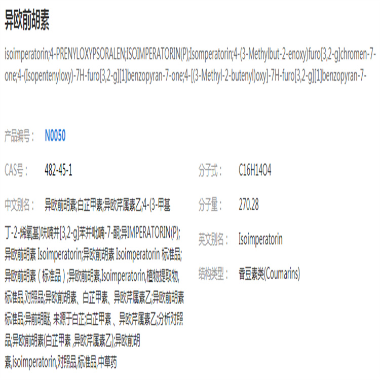 異歐前胡素 自制對照品 中檢院 純度高 科研專用