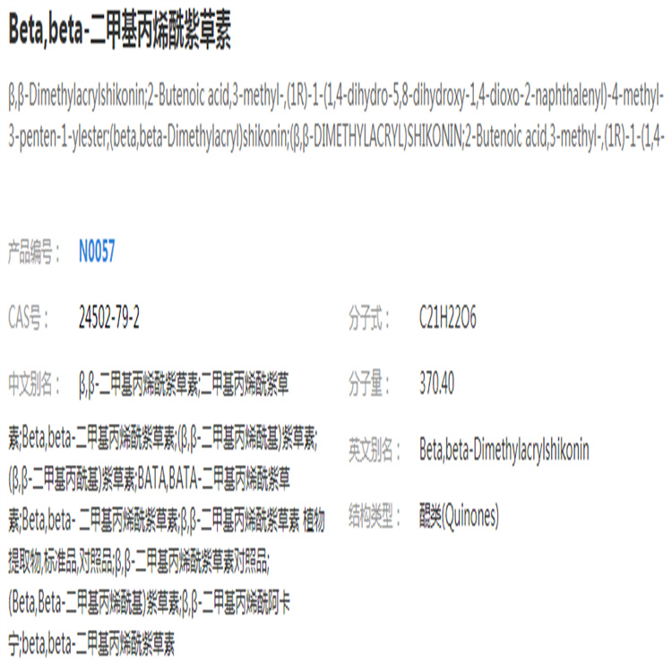 Beta,beta-二甲基丙烯酰紫草素 對(duì)照品標(biāo)準(zhǔn)品 純度高 圖譜全 直供科研