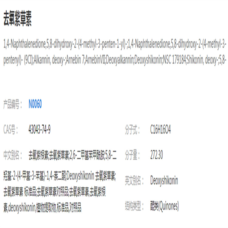 去氧紫草素 對照品標準品 純度高 圖譜全 直供科研
