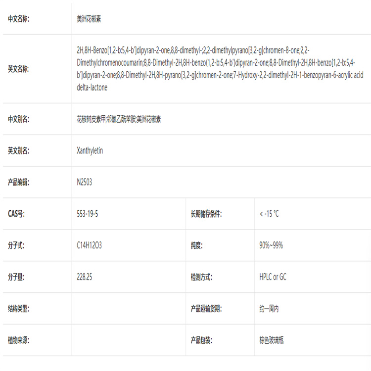 美洲花椒素 對照品標(biāo)準(zhǔn)品 純度高 圖譜全 直供科研
