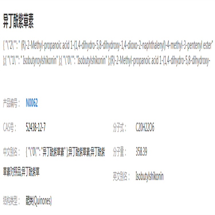 異丁酰紫草素 自制對(duì)照品 中檢院 純度高 科研專用