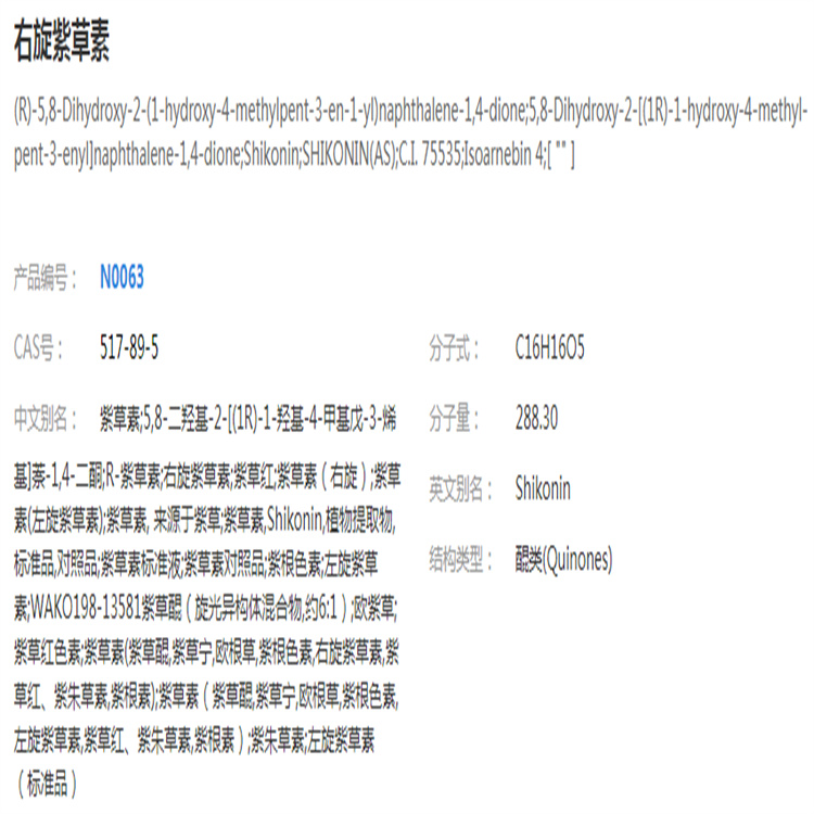右旋紫草素 對照品標準品 純度高 圖譜全 直供科研