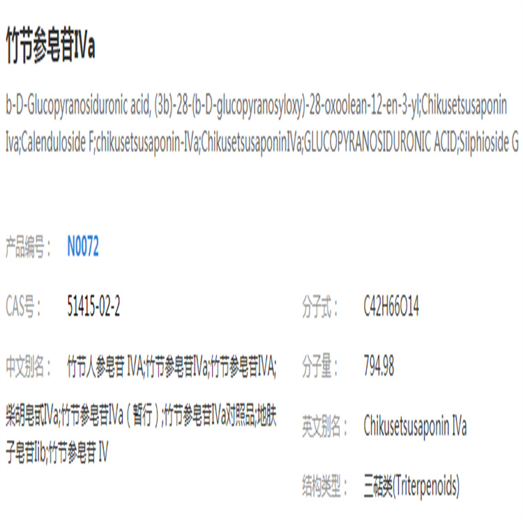 竹節(jié)參皂苷Ⅳa 對(duì)照品標(biāo)準(zhǔn)品 純度高 圖譜全 直供科研