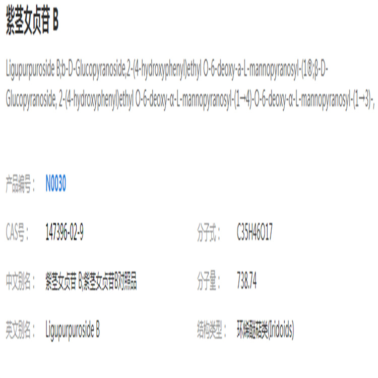 紫莖女貞苷B-Ligupurpuroside B-147396-02-9 對(duì)照品標(biāo)準(zhǔn)品