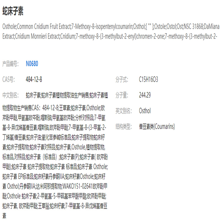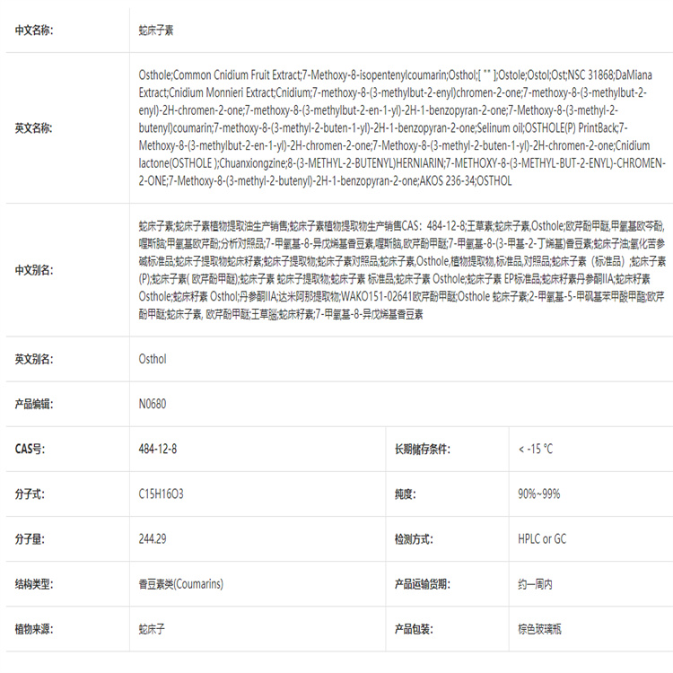 蛇床子素 對照品標準品 純度高 圖譜全 直供科研