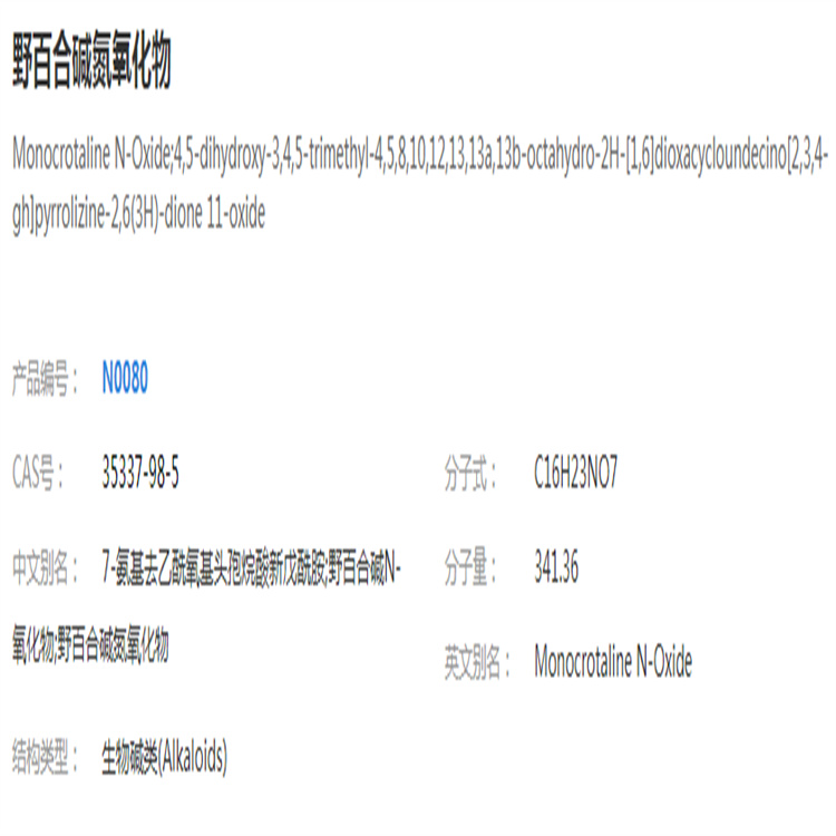 野百合堿氮氧化物 對照品 科研專用 圖譜全 純度高