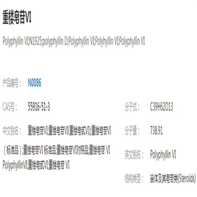 重樓皂苷VI 自制對(duì)照品 中檢院 純度高 科研專用