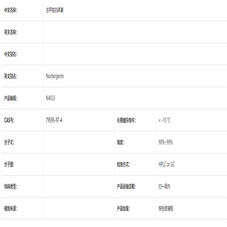 去甲巖白菜素 標(biāo)準(zhǔn)品 現(xiàn)貨直發(fā) 提取純化 色譜柱
