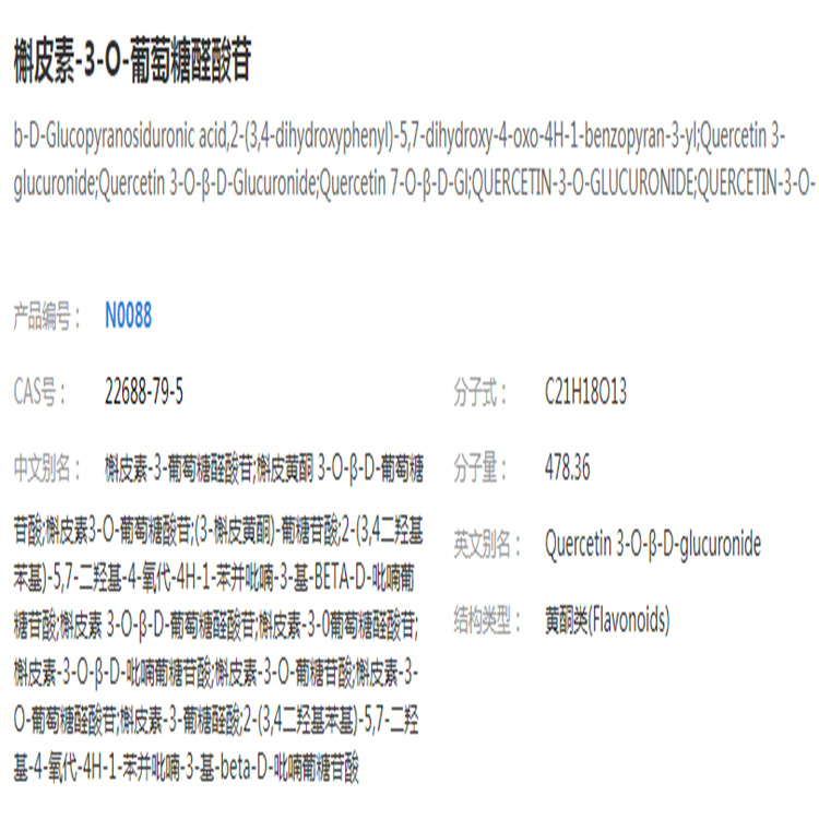 槲皮素-3-O-葡萄糖醛酸苷 對照品標(biāo)準(zhǔn)品 純度高 圖譜全 直供科研