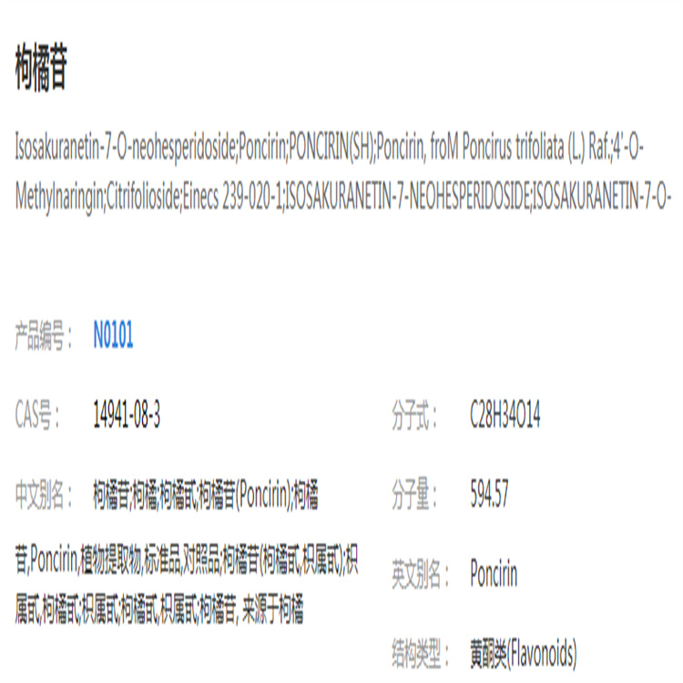 枸橘苷 現(xiàn)貨直發(fā) 支持貨到付款 可定制檢測定制生產(chǎn)