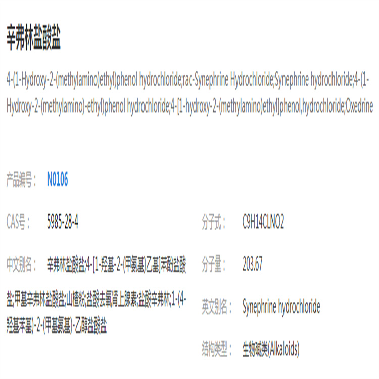 辛弗林鹽酸鹽 自制對(duì)照品 中檢院 純度高 科研專用