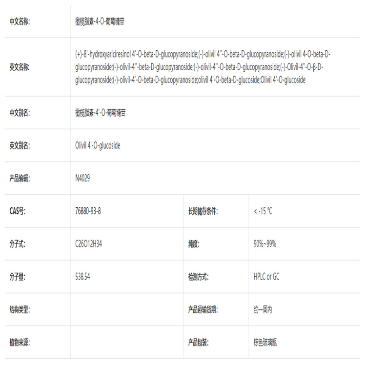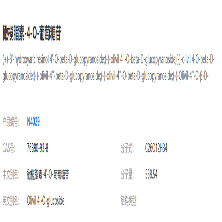 橄欖脂素-4-O-葡萄糖苷 hplc98% 三大圖譜 科研直供
