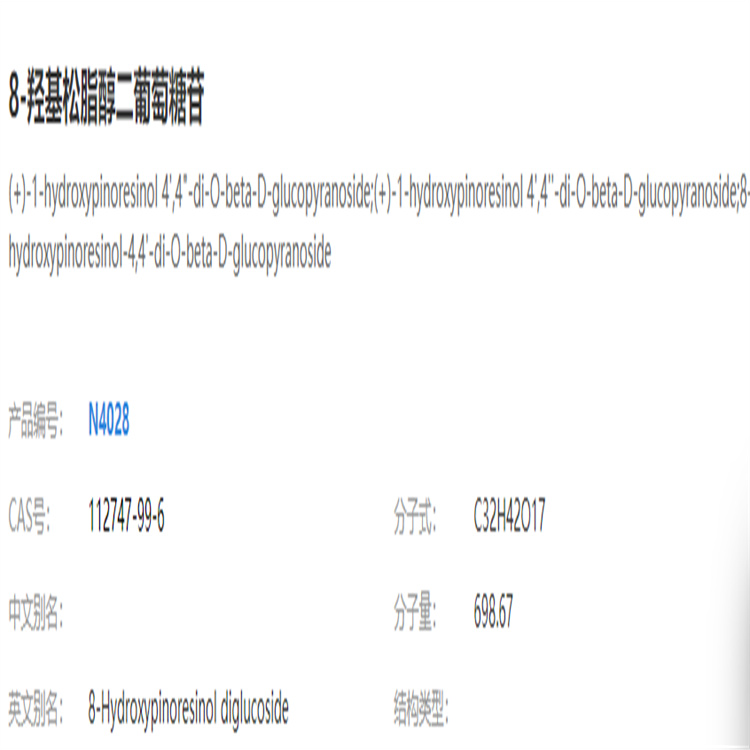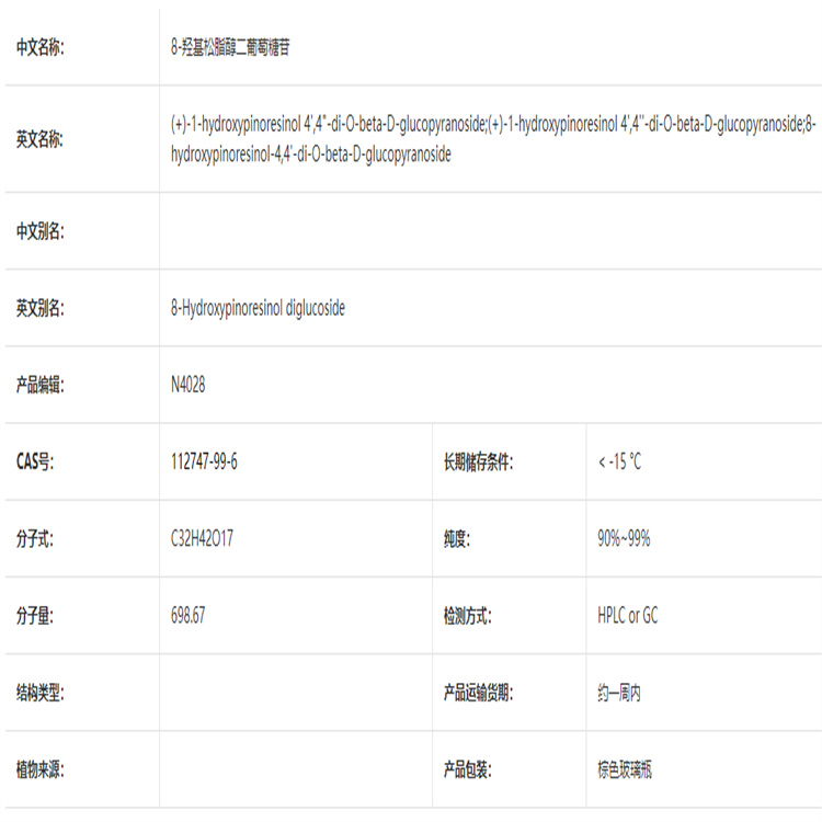 8-羥基松脂醇二葡萄糖苷 自制對照品 中檢院 純度高 科研專用