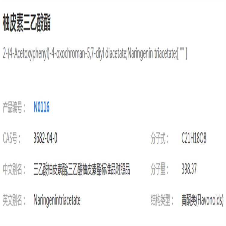 柚皮素三乙酸酯 對(duì)照品標(biāo)準(zhǔn)品 純度高 圖譜全 直供科研