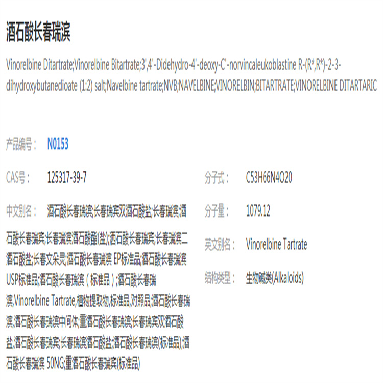 酒石酸長(zhǎng)春瑞濱 對(duì)照品標(biāo)準(zhǔn)品 純度高 圖譜全 直供科研