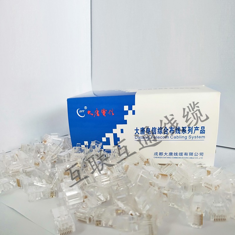 大唐電信水晶頭是根據(jù)國際標準EIA/TIA-568B設計制造的。優(yōu)于超五類/六類傳輸系統(tǒng)標準的要求,可實現(xiàn)更高的可靠性,具有防止松動、自鎖、插拔靈活的功能,接點鍍金厚度為50u"(inch),插拔壽命>1000次。適用于設備、配線架多用戶模塊等之間的快速連接。多種顏色、長度都可訂制。