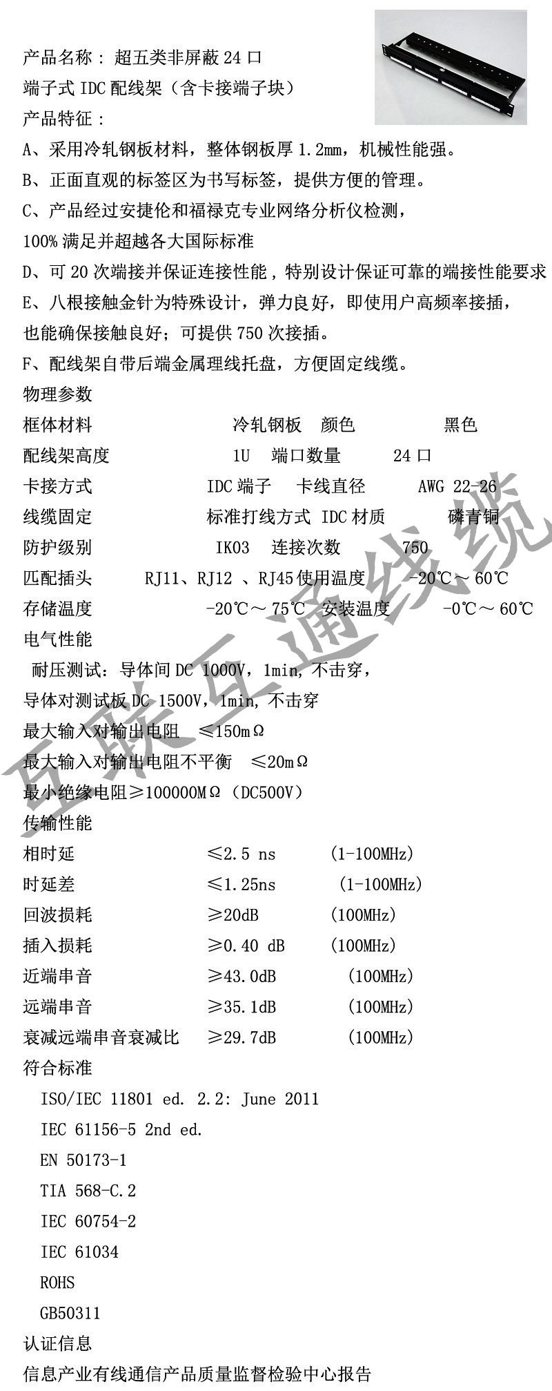 | 端口數(shù)量 | 24口 | 卡接方式 | IDC端子 | |