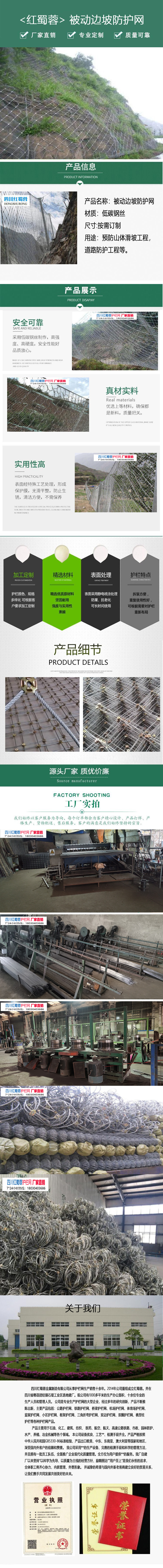"成都紅蜀蓉被動防護是由鋼絲繩網(wǎng)、環(huán)形網(wǎng)、(需攔截小塊落石時附加一層鐵絲格柵)、固定系統(tǒng)(錨桿、拉錨繩、基座和支撐繩)減壓環(huán)和鋼柱四個主要部分構(gòu)成。鋼柱和鋼絲繩網(wǎng)連接組合構(gòu)成一個整體,對所防護的區(qū)域形成面防護,從而阻止崩塌巖石土體的下墜,起到邊坡防護作用。
