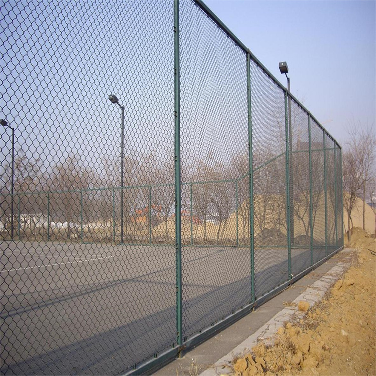 球場圍網(wǎng)材質(zhì):圍網(wǎng)采用的鍍鋅絲,外包PVC或者PE塑。圍柱采用鍍鋅管加噴塑或者浸塑,具有很好的防腐能力。