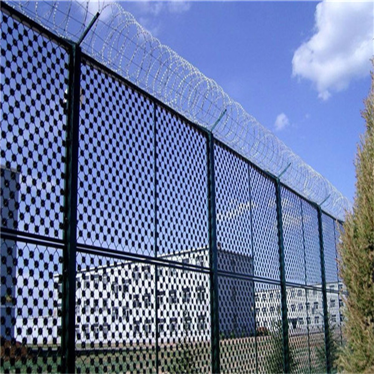 球場圍網(wǎng)材質(zhì):圍網(wǎng)采用的鍍鋅絲,外包PVC或者PE塑。圍柱采用鍍鋅管加噴塑或者浸塑,具有很好的防腐能力。