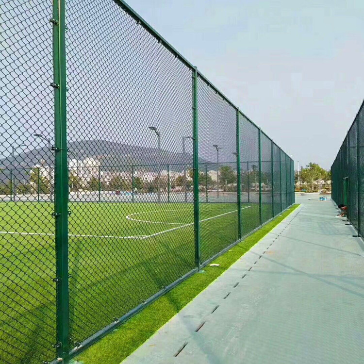 球場圍網(wǎng)規(guī)格:包塑絲徑3.8mm,網(wǎng)孔50*50mm,尺寸為3*4米,立柱75*2mm,橫柱60*2mm,外形尺寸4米高,3米寬??梢愿鶕?jù)客戶要求進(jìn)行加工定做。