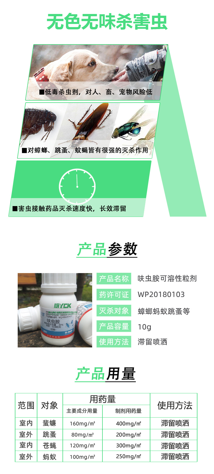 | 適用對象:: | 蟑螂、臭蟲、蚊蠅、跳蚤 | 物理形態(tài):: | 粉狀 | |