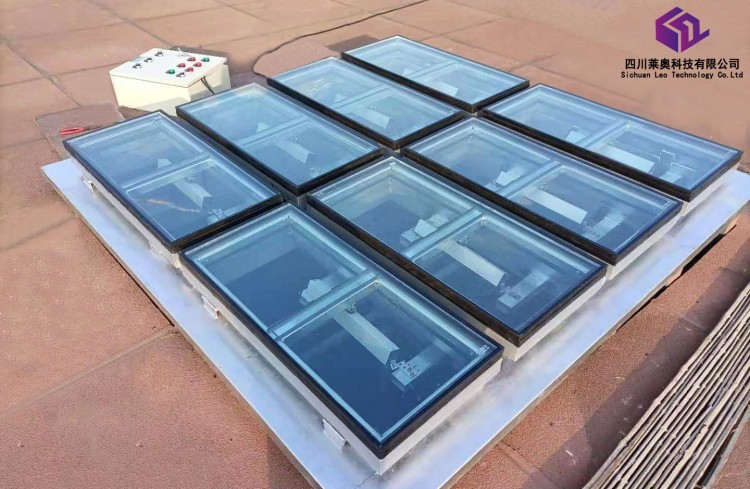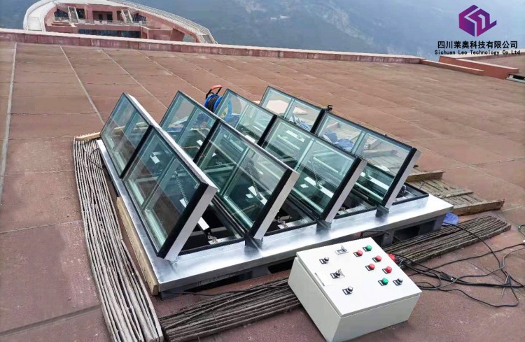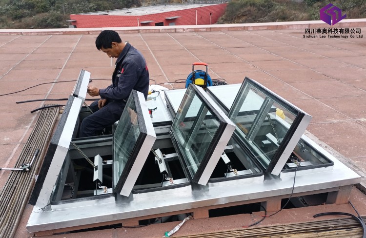 一字型電動(dòng)采光排煙天窗通過(guò)電動(dòng)啟閉來(lái)控制其開(kāi)啟角度,完全開(kāi)啟角度為90° 時(shí),其通風(fēng)排煙量大。