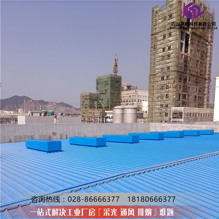 薄型通風天窗采用三層防雨板設計,獨特的結構形式使通風天窗的有效通風面積和采光面積顯著增大,通過引導室內熱氣流斜向上運動,減少氣流動能耗損,明顯提高通風效率。其中第三層防雨板承接雨霧,有效防止強風雨天氣下的飄雨,適合風荷載較大、防雨性能要求高的場合。