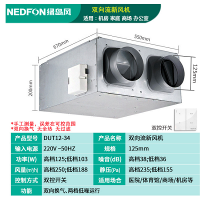 昆明綠島風(fēng)雙向流新風(fēng)機(jī)DUT12-34 新排風(fēng)靜音新風(fēng)機(jī)吊頂新風(fēng)機(jī)管道雙向換氣機(jī)250風(fēng)量