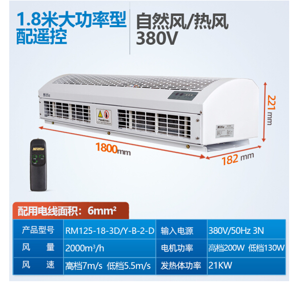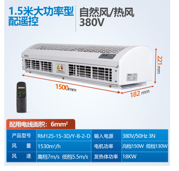 內(nèi)蒙古綠島風(fēng) 大功率遙控型電加熱低噪音風(fēng)幕機(jī) RM125-18-3D/Y-B-2-D 冷暖兩用型空氣幕