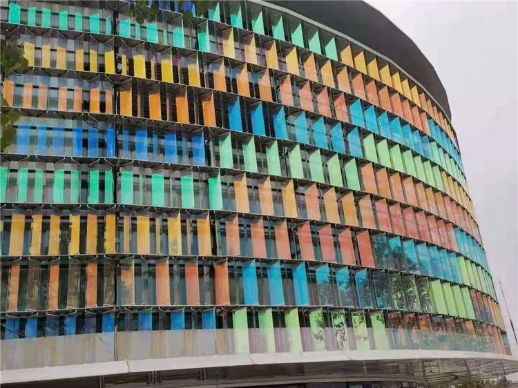 產(chǎn)品簡(jiǎn)介:炫彩玻璃是一種顏色可以根據(jù)太陽(yáng)直射的頂角和觀察者所處位置的角度而變化的玻璃。 炫彩玻璃的色彩效果在加工金屬膜涂層過(guò)程中產(chǎn)生,低折射金屬氧化物涂層可根據(jù)視角和日光 條件的不同產(chǎn)生生動(dòng)的顏色變化,基于其硬度、耐擦傷性和高耐化學(xué)性,炫彩玻璃比傳統(tǒng)玻璃 更加耐用、更易護(hù)理和清潔。