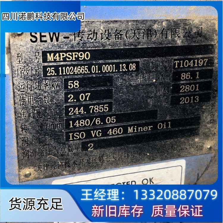 全新二手SEW減速機(jī) M4PSF90型 輸入轉(zhuǎn)速比為244.7855,水泥廠斜拉鏈設(shè)備專用減速機(jī)