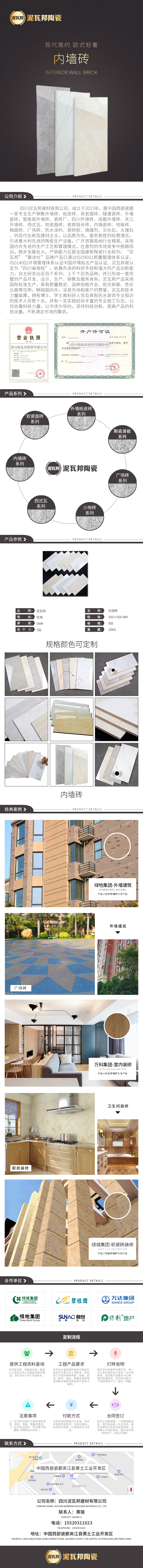 四川泥瓦邦建材有限公司,成立于2015年,是中國西部瓷都一家專業(yè)生產(chǎn)銷售外墻磚、紙皮磚、軟瓷面磚、隧道瓷磚、外墻瓷磚、墊板窯外墻磚、瓷磚廠、四川外墻磚、成都外墻磚、夾江外墻磚、西式瓦、軟瓷面磚、瓷質(zhì)拋光磚、內(nèi)墻瓷磚、地板磚、釉面磚、廣場(chǎng)磚、防水涂料、瓷磚膠、填縫劑、文化石、大理石、的現(xiàn)代化新型建材企業(yè),以品質(zhì)為先,服務(wù)致勝的經(jīng)營理念,引進(jìn)意大利先進(jìn)的陶瓷生產(chǎn)設(shè)備,廣開賢路吸納行業(yè)精英,采用國內(nèi)外先進(jìn)的生產(chǎn)工藝和管理模式,在激烈的市場(chǎng)競(jìng)爭(zhēng)中脫穎而出,穩(wěn)步發(fā)展壯大,產(chǎn)銷能力位居全國建筑陶瓷行業(yè)前列,“泥瓦邦”“豪涂仕”品牌產(chǎn)品已通過ISO9001質(zhì)量管理體系認(rèn)證、ISO14001環(huán)境管理體系認(rèn)證中國環(huán)境標(biāo)志產(chǎn)品認(rèn)證、泥瓦邦被認(rèn)定為“四川省商標(biāo)”,依靠先進(jìn)的科研手段和強(qiáng)大的產(chǎn)品創(chuàng)新能力,自主研發(fā)出近百個(gè)系列、上千個(gè)花色品種,并已形成一套完整的產(chǎn)品開發(fā)、設(shè)計(jì)、生產(chǎn)、銷售及服務(wù)體系,泥瓦邦產(chǎn)品采用國際標(biāo)準(zhǔn)生產(chǎn),具有質(zhì)量穩(wěn)定、品種規(guī)格齊全、款式新穎、性價(jià)比高等優(yōu)勢(shì),暢銷國內(nèi)外,深受市場(chǎng)和客戶的贊譽(yù),泥瓦邦技術(shù)力量雄厚,擁有博士、學(xué)士高科研人員及具有防水裝飾專業(yè)知識(shí)的技術(shù)人員數(shù)十名,并有一支實(shí)踐經(jīng)驗(yàn)豐富的專業(yè)施工隊(duì)伍,公司依靠科技力量,以市場(chǎng)為導(dǎo)向,堅(jiān)持科技創(chuàng)新,提高產(chǎn)品的科技含量,不斷滿足市場(chǎng)的需求。