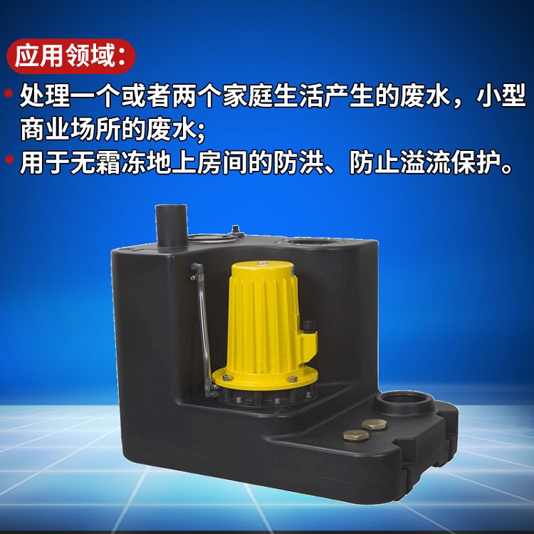 Boy單系統(tǒng)污水提升裝置,主要用于處理家庭生活產(chǎn)生的廢水,小型商業(yè)場所;連續(xù)性排放廢水的場所;無霜凍地上房間的防洪、防止溢流保護(hù)等。
