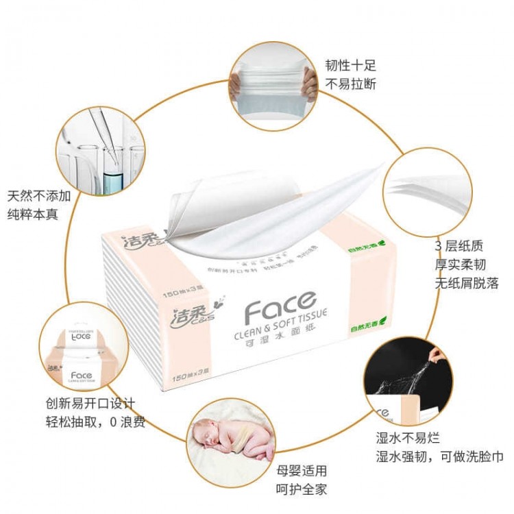 潔柔紙巾:潔柔抽紙,小卷紙,擦手紙,方巾紙,大卷紙等;
