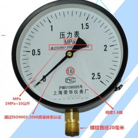 現(xiàn)貨提供上海榮華Y-100型徑向普通壓力表油壓氣壓水壓測量表