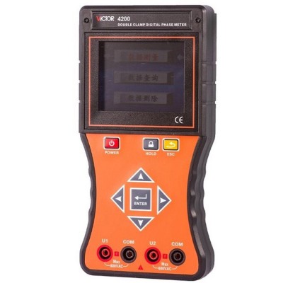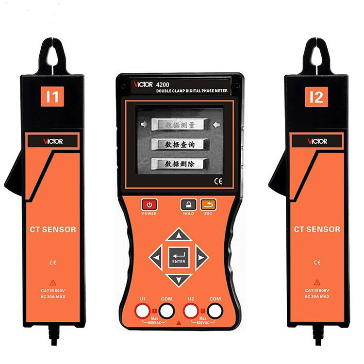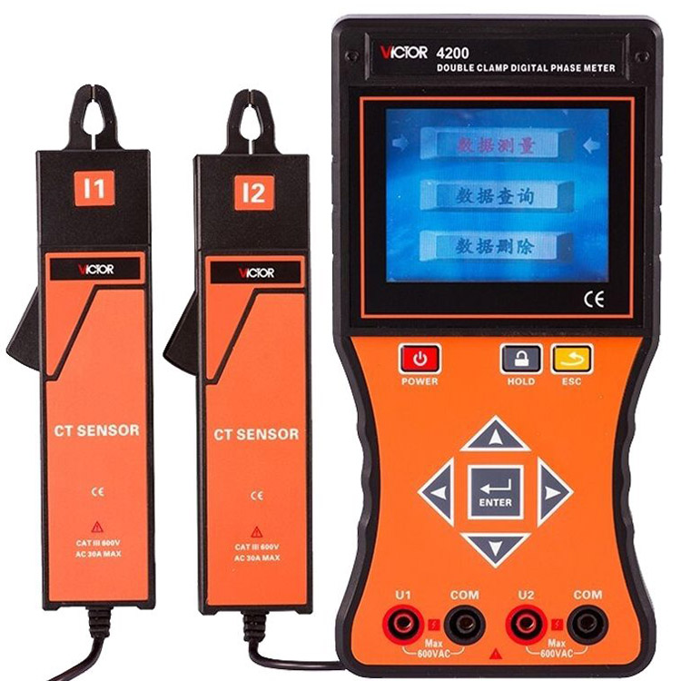 VICTOR勝利儀器三相相序檢測儀VC4200雙鉗數(shù)字相位伏安表彩屏顯示600V/20A