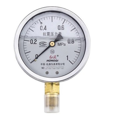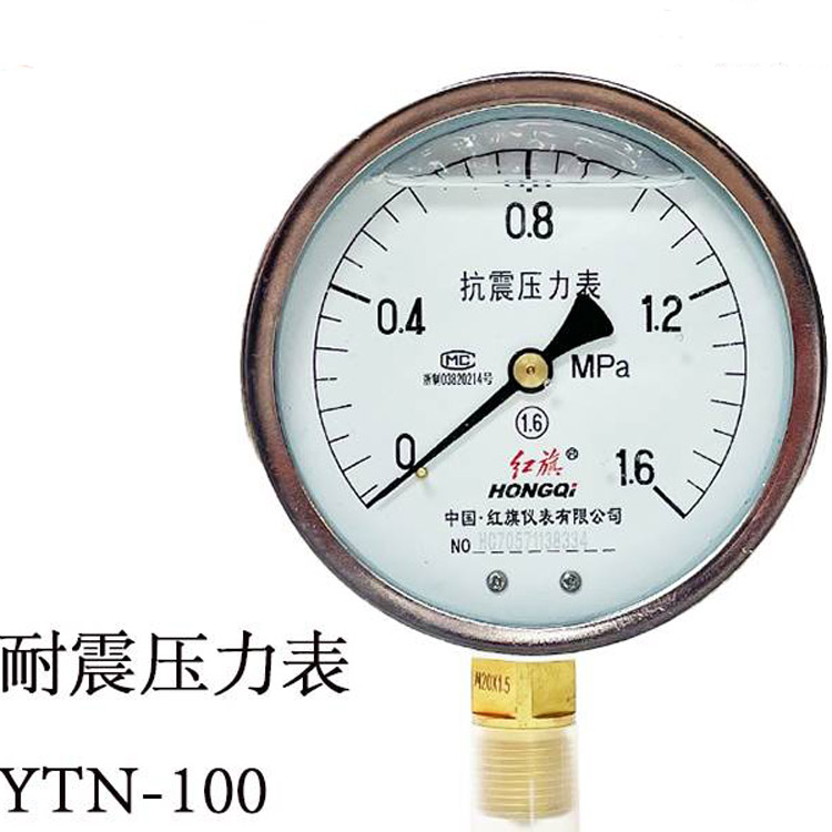紅旗儀表抗震壓力表YTN-100防震油壓表水壓表徑向1.6精度 0-60MPA氣壓表