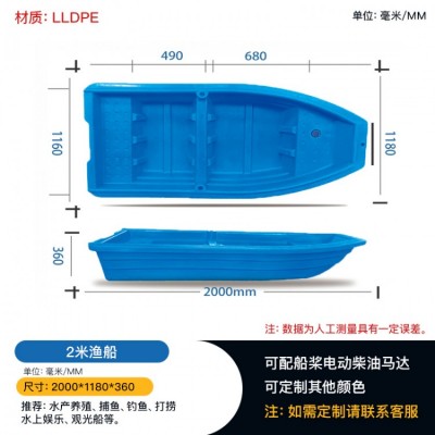 成都2米塑料船加厚雙層牛筋漁船魚塘養(yǎng)殖船河道打撈船