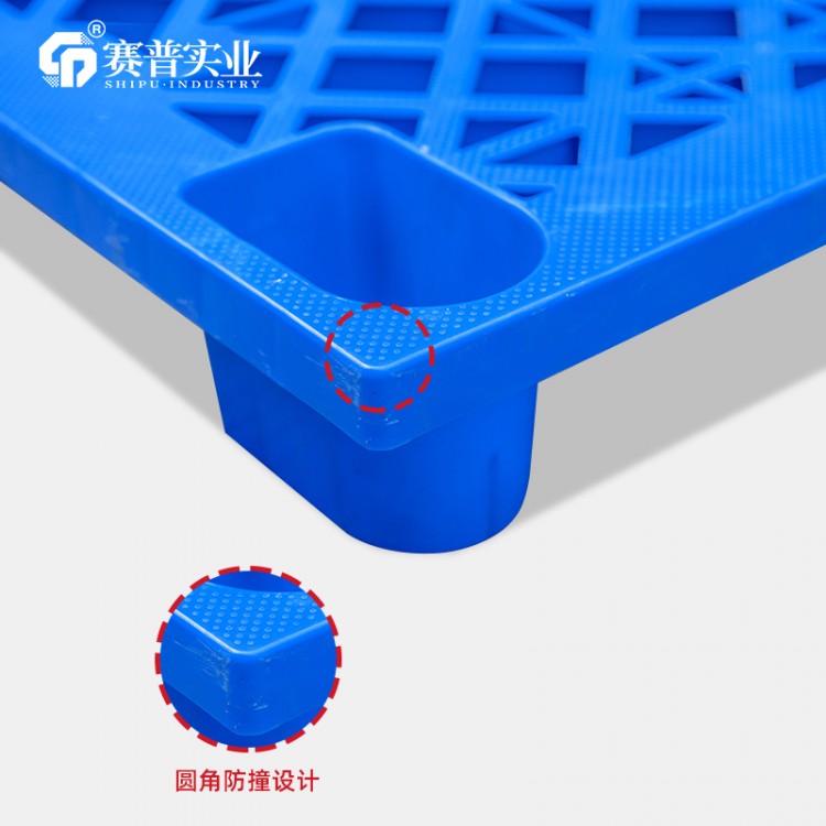 1、托盤外觀整潔,易清洗易消毒。 2、無釘無刺,在包裝過程中不會因意外損毀貨物。 3、抗凍、抗摔,原料耐酸堿,耐腐蝕,可在多種特殊場合使用。 4、利于倉庫環(huán)境改善,不會對貨物尤其是食品有任何污染。 5、免熏蒸,減少貨物出口的手續(xù), 6、不助燃,無靜電火花,對倉庫防火有作用。 7、破損塑料托盤可回收,經(jīng)加工可作為其他物品的原材料。 8、使用壽命長。