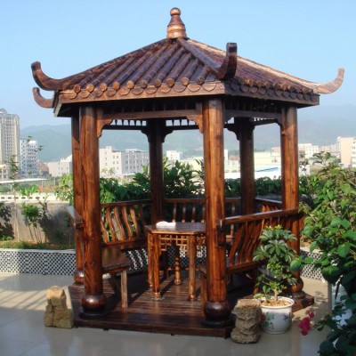 防腐木涼亭是用防腐木組建而成,防腐木是將木材經(jīng)過(guò)特殊防腐處理后,具有防腐爛、防白蟻、防真 菌的作用。