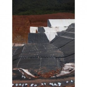 膨潤土防水毯 (GCL) 是一種新型土工合成材料。它由經(jīng)級配過的天然鈉基膨潤土顆粒和相應(yīng)的外加劑混合均勻而成,經(jīng)特殊的工藝及設(shè)備,把膨潤土顆粒固定在兩層土工布之間,制成膨潤土防水毯,既具有土工材料的全部特性,又具有優(yōu)異的防水(滲)性能。其防水機(jī)理為:膨潤土粒子遇水膨脹,使其形成均勻的膠體系統(tǒng),在兩層土工布限制作用下,使膨潤土從無序變?yōu)橛行虻呐蛎?,持續(xù)的吸水膨占結(jié)果是膨潤土層自身達(dá)到密實(shí),從而具有防水作用。
