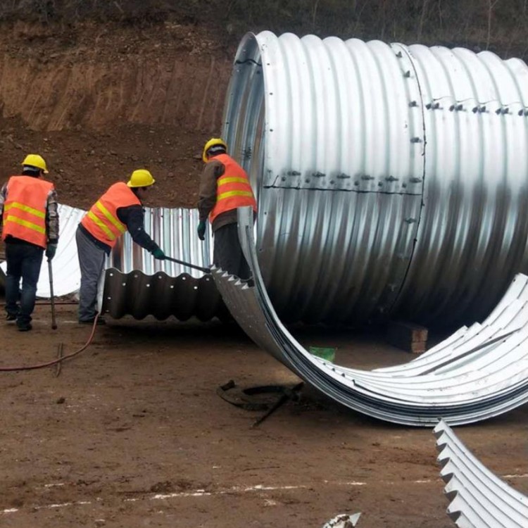 鋼波紋管涵又名熱鍍鋅鋼波紋管涵、整裝鋼波紋管涵、拼裝鋼波紋管涵是將2.0mm-12.0mm薄鋼板(材質(zhì)可以是Q235或者Q355鋼板)壓成波紋后,