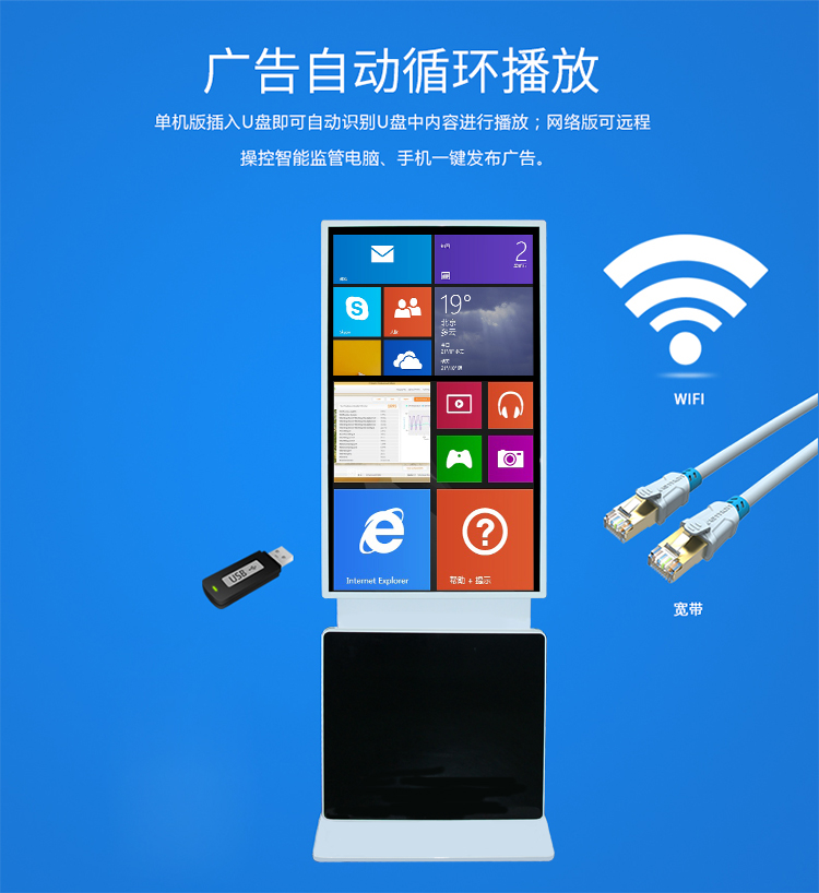 智能廣告一體機落地旋轉展示顯示屏商業(yè)廣告機廠家移動廣告展示一體機