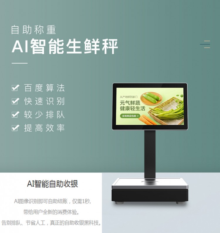 AI圖像識(shí)別即可自助結(jié)賬,僅需1秒,帶給用戶全新的消費(fèi)體驗(yàn)。告別排隊(duì)、節(jié)省人工,真正的自助收銀黑科技。